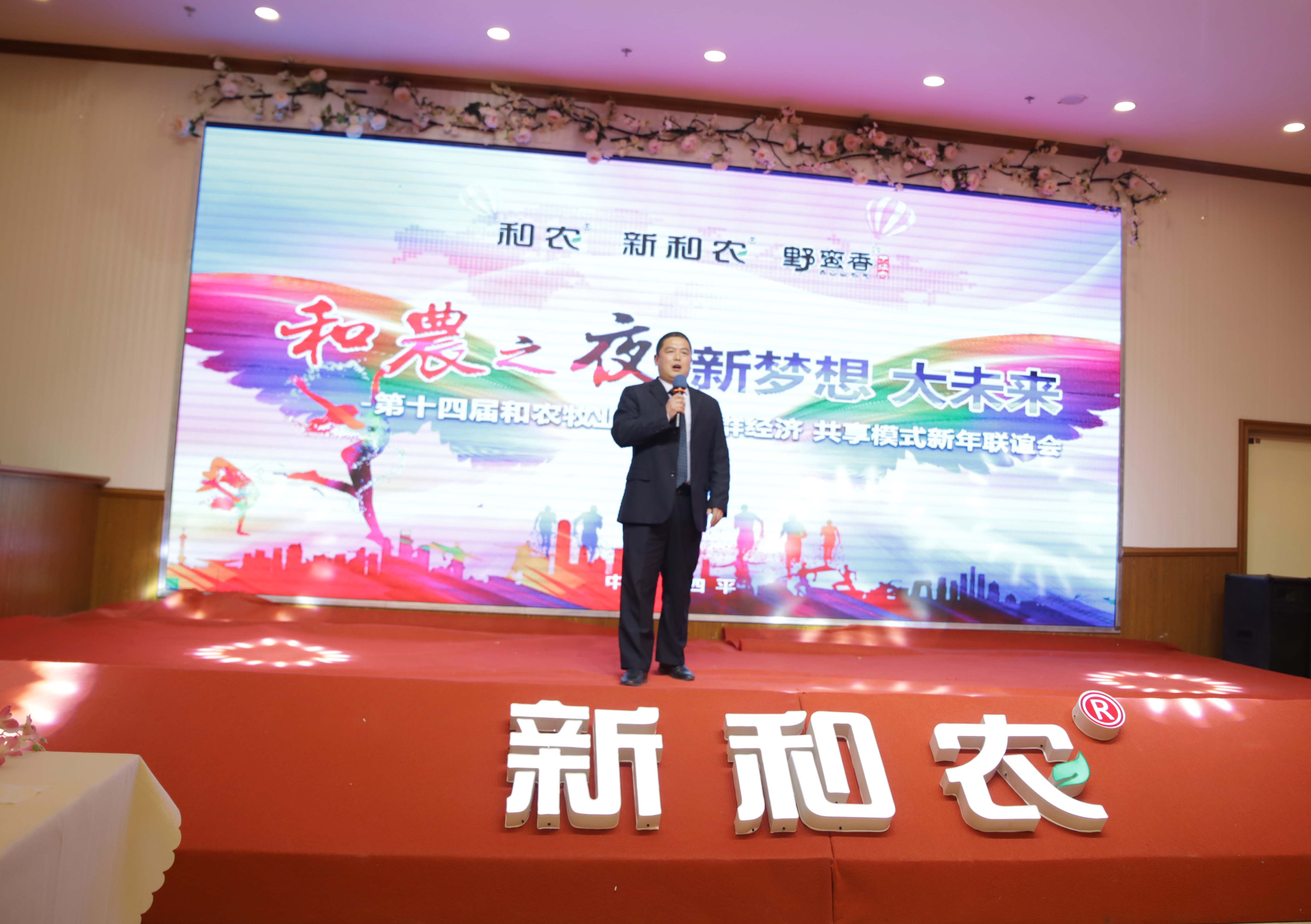 由吉林和農(nóng)牧業(yè)集團(tuán)主辦,四平和農(nóng)牧業(yè)承辦,長春和農(nóng)、本方農(nóng)業(yè)、久億久糧食收儲協(xié)辦 "和農(nóng)之夜 新夢想 大未來" —— 第十四屆和農(nóng)牧業(yè)集團(tuán) 社群經(jīng)濟(jì) 共享模式 新年聯(lián)誼會頒獎盛典在四平錦江之星酒店落下帷幕。